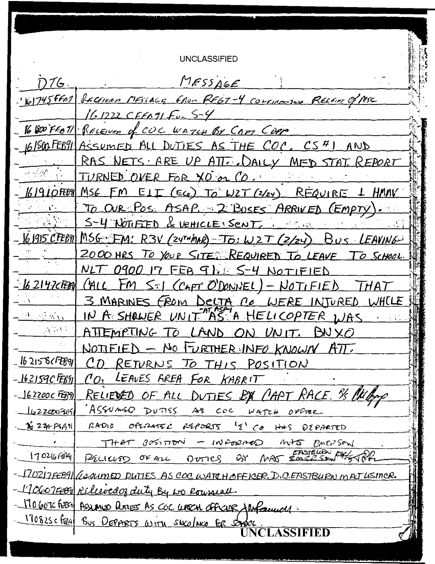 Document 67 f:/Week-35/BX600013/COMMAND CHRONOLOGY 2ND BATTALION 24TH MARINES JAN - MAR 1991 2 OF 2/statement reference s 3 logs 9 jan 1991:0913961614048
