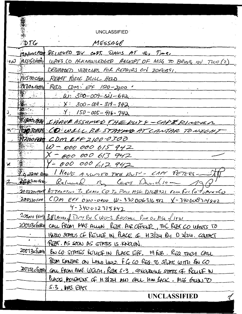 Document 67 f:/Week-35/BX600013/COMMAND CHRONOLOGY 2ND BATTALION 24TH MARINES JAN - MAR 1991 2 OF 2/statement reference s 3 logs 9 jan 1991:0913961614048