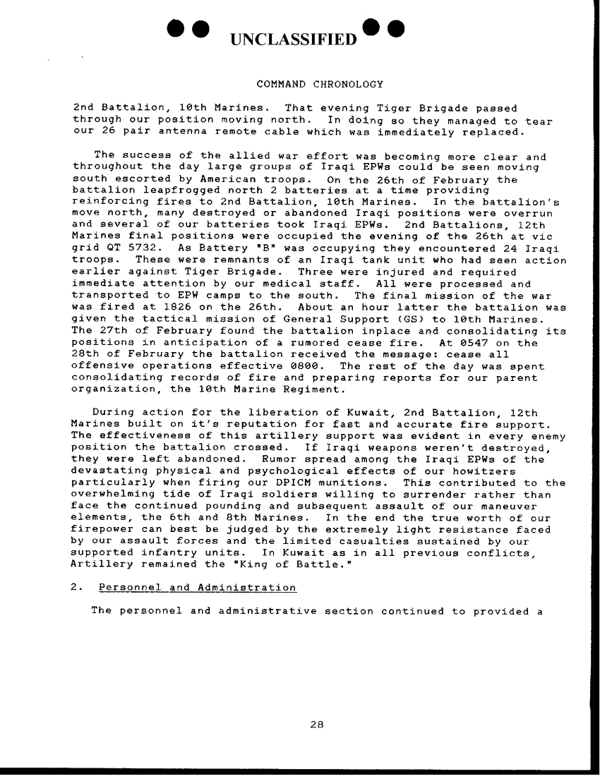 Folder Title = COMMAND CHRONOLOGY 2ND BATTALION 12TH MARINE REGIMENT JUL 90 - JUN 91