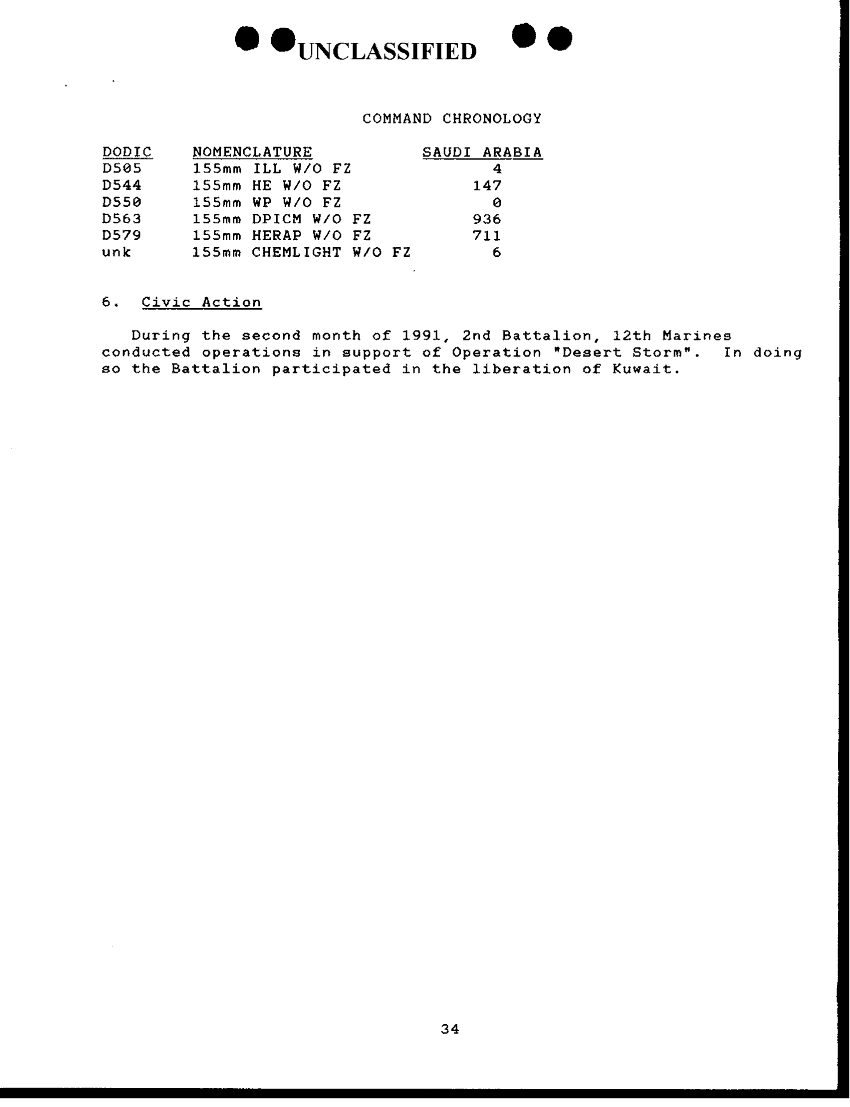 Document 16 f:/Week-38/BX600025/COMMAND CHRONOLOGY 2ND BATTALION 12TH MARINE REGIMENT JUL 90 - JUN 91/command chronology for period 1 feb to 28 feb 19:100196125403
