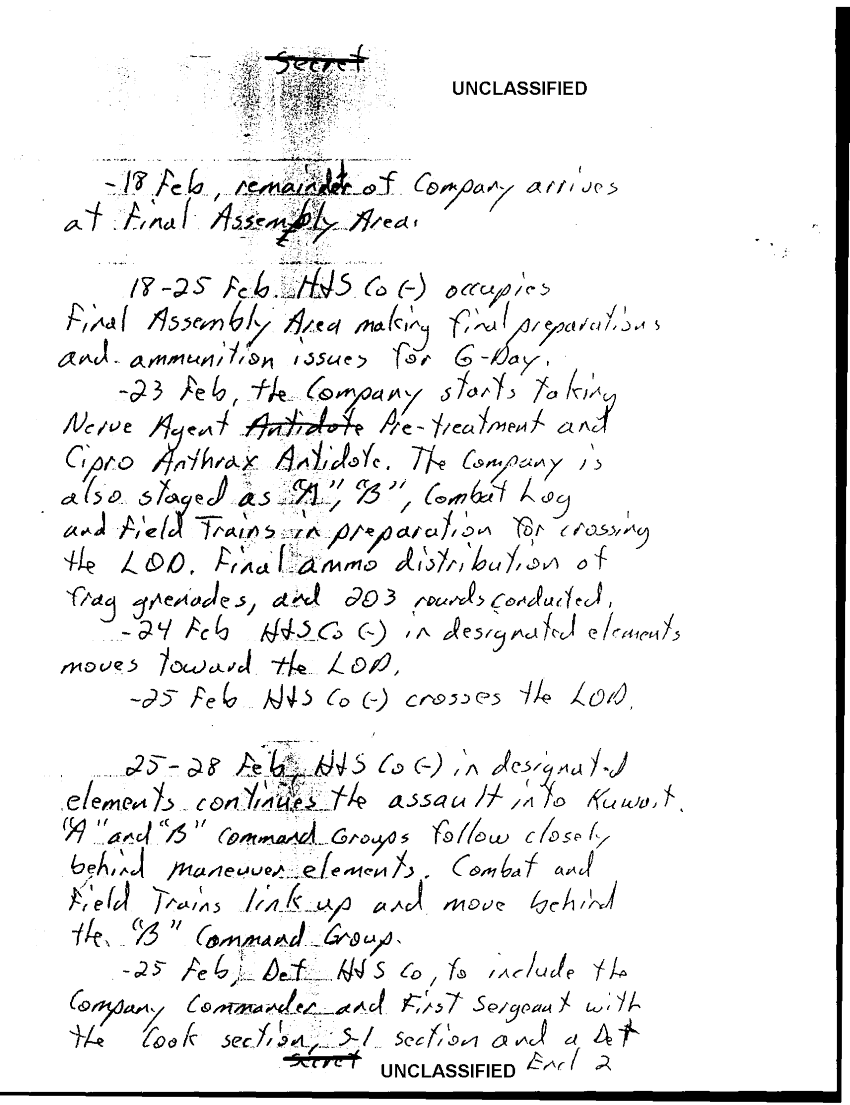 Document 4 f:/Week-35/BX600016/COMMAND CHRONOLOGY 2ND BATTALION 4TH MARINES FEB 1991 1 OF 3/command chronology headquarters and service co 2:1004961340275