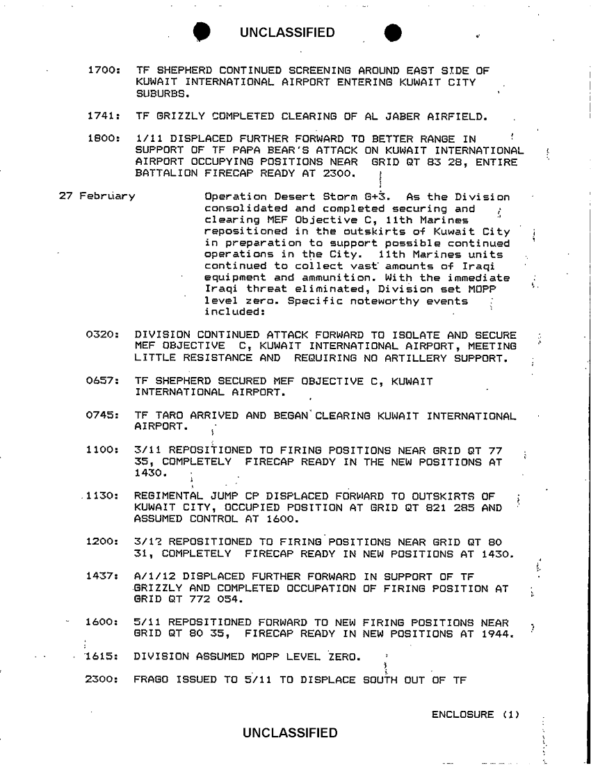 Document 23 f:/Week-36/BX600015/COMMAND CHRONOLOGY 11TH MARINES JAN - JUL 1991/command chronology for 1 jan to 28 feb 91 13 m:10049613410219
