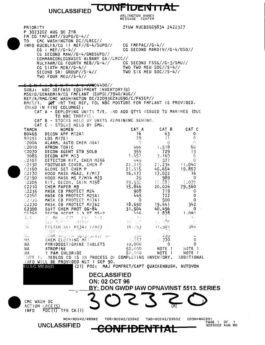 Document 1 f:/Week-35/BX600012/NBC LOGISTICS REQUIREMENTS CNA 2552/nbc defense equip inventory 30 aug 90:10119615450213