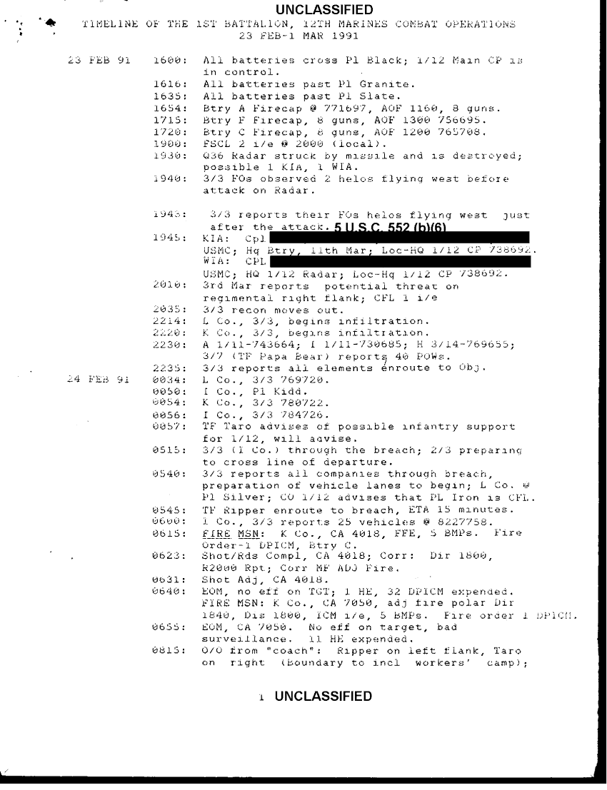 Document 5 f:/Week-38/BX600025/COMMAND CHRONOLOGY 1ST BATTALION 12TH MARINE REGIMENT JAN - FEB 1991/timeline 1st bn 12th mar cbt ops 23 feb 1 mar 91:10189614542827