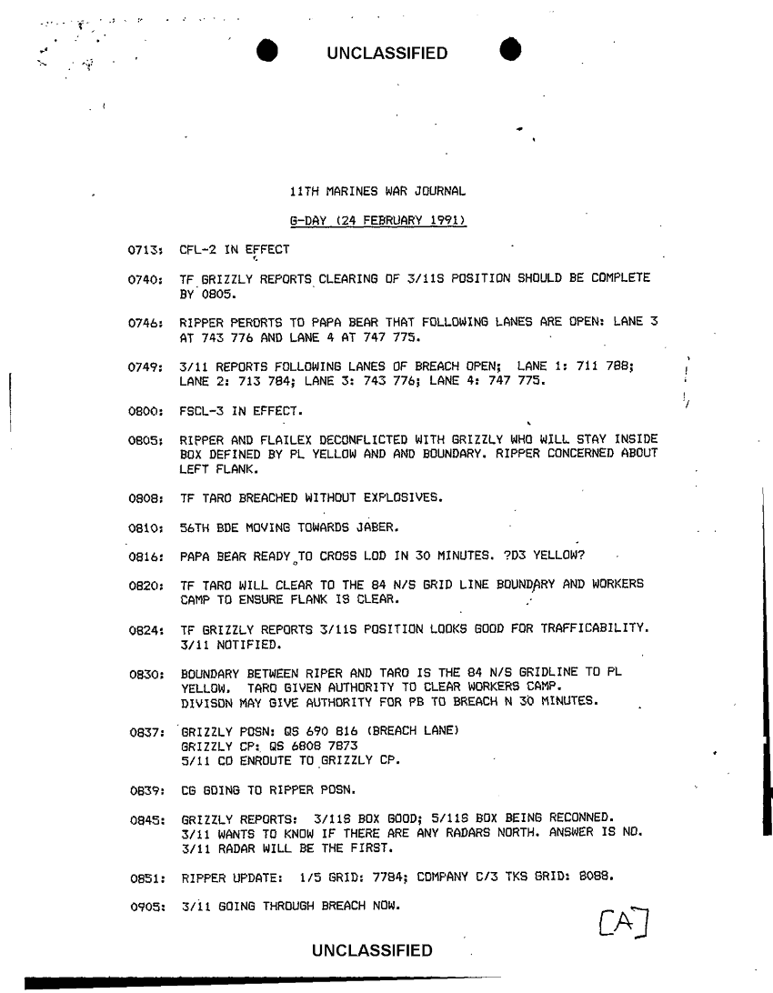 Subject = 11TH MARINES WAR JOURNAL G DAY 24 FEB 91