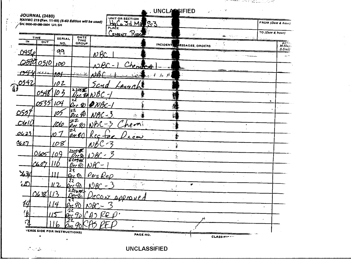 Document 14 f:/Week-38/BX600025/COMMAND CHRONOLOGY 1ST BATTALION 12TH MARINE REGIMENT MAR - JUN 1991 1 OF 3/incidents messages journal orders:1025961320028