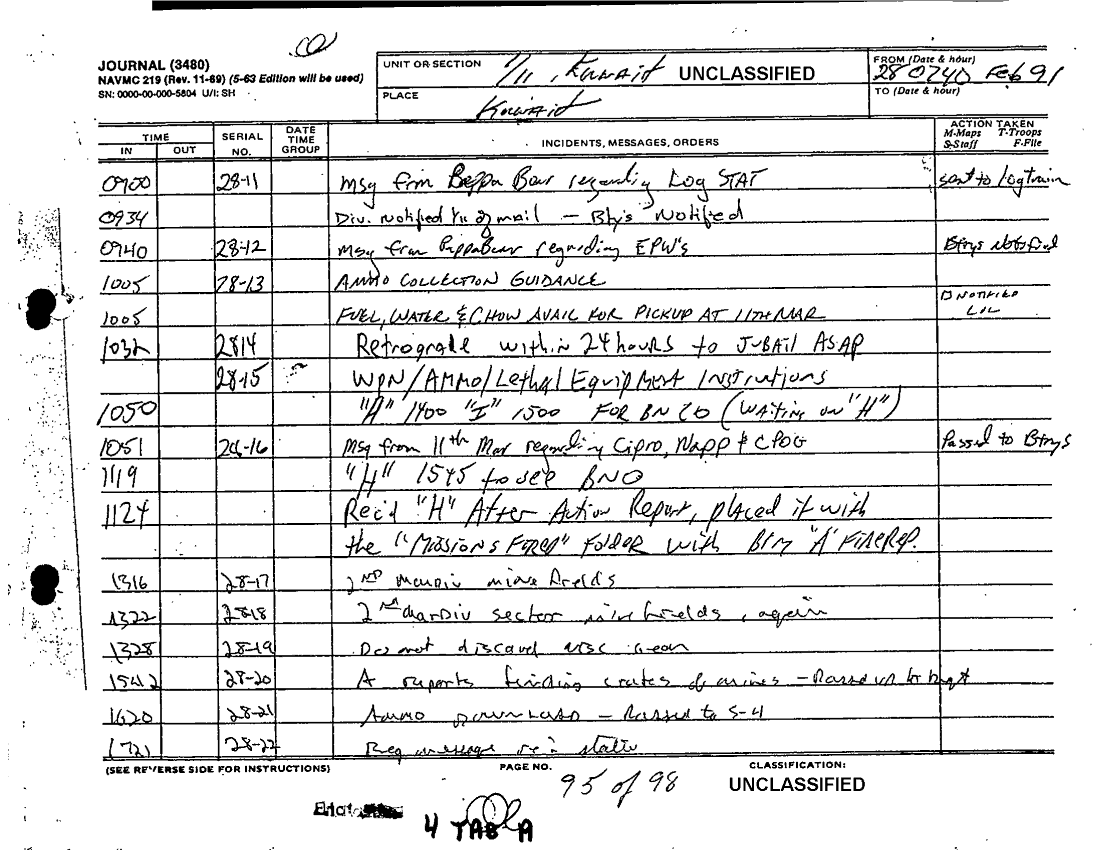 Document 98 f:/Week-36/BX600015/COMMAND CHRONOLOGY 1ST BATTALION 11TH MARINES JAN - FEB 1991/command chronology for period 1 jan to 28 feb 91:1025961320039
