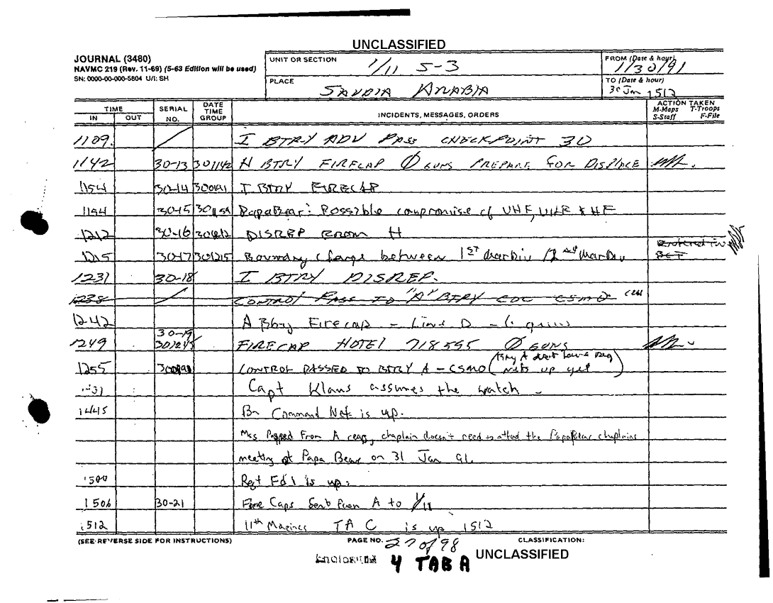 Folder Title = COMMAND CHRONOLOGY 1ST BATTALION 11TH MARINES JAN - FEB 1991