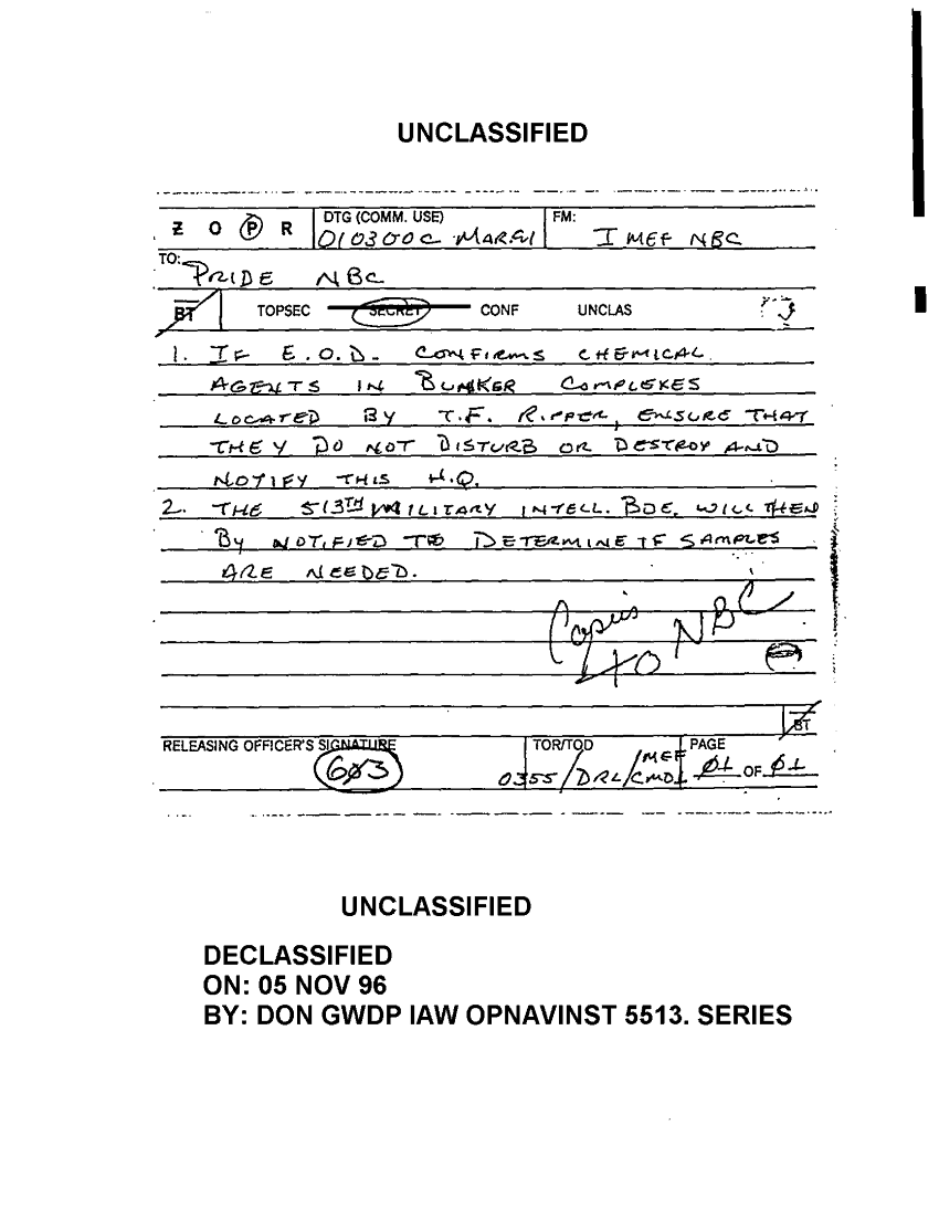 Document 1 f:/Week-43/BX600056/1ST MARDIV JOURNAL ENTRIES 566-646 FEB 91/radio message traffic 1 mef nbc 1 mar 91:11129615130619
