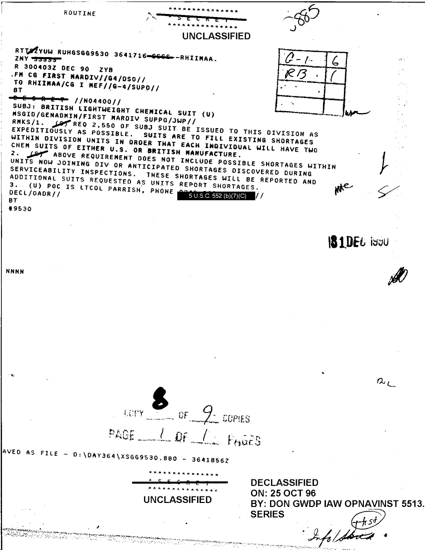 Document 1 f:/Week-42/BX600054/NUCLEAR BIOLOGICAL AND CHEMICAL MESSAGES/british lightweight chemical suit 30 dec 90:1112961512473