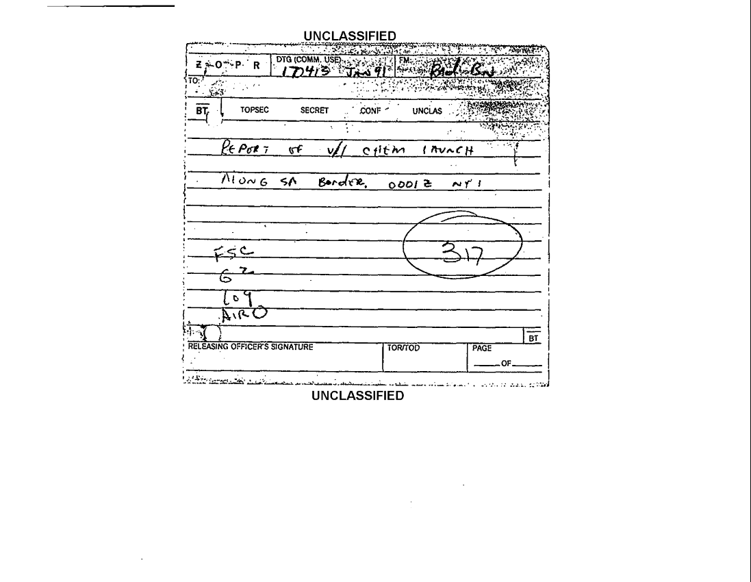 Subject = FIELD MESSAGE RPT OF CHEM LAUNCH 17 JAN 91