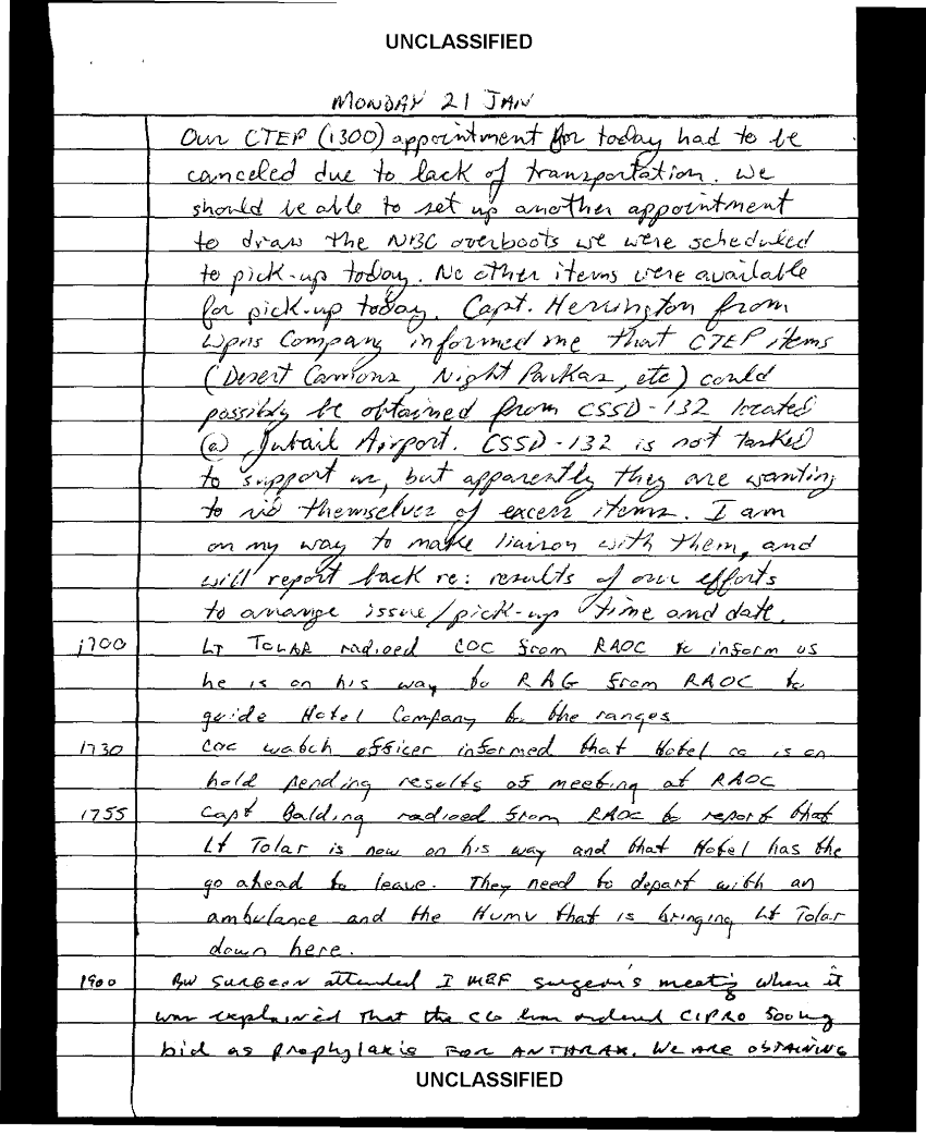 Document 103 f:/Week-35/BX600013/COMMAND CHRONOLOGY 3RD BATTALION 24TH MARINES JAN - MAR 1991 4 OF 4/handwritten log:0102970950272