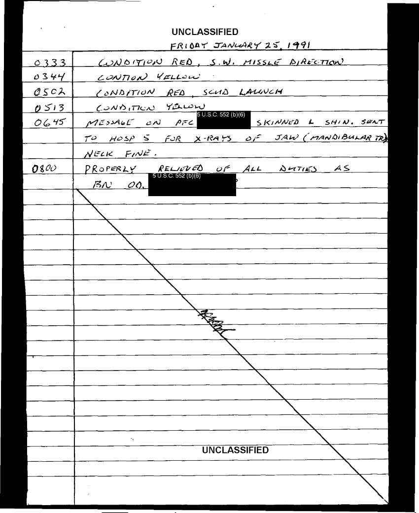 Document 103 f:/Week-35/BX600013/COMMAND CHRONOLOGY 3RD BATTALION 24TH MARINES JAN - MAR 1991 4 OF 4/handwritten log:0102970950272