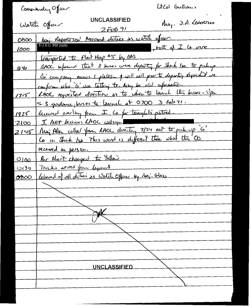 Document 103 f:/Week-35/BX600013/COMMAND CHRONOLOGY 3RD BATTALION 24TH MARINES JAN - MAR 1991 4 OF 4/handwritten log:0102970950272