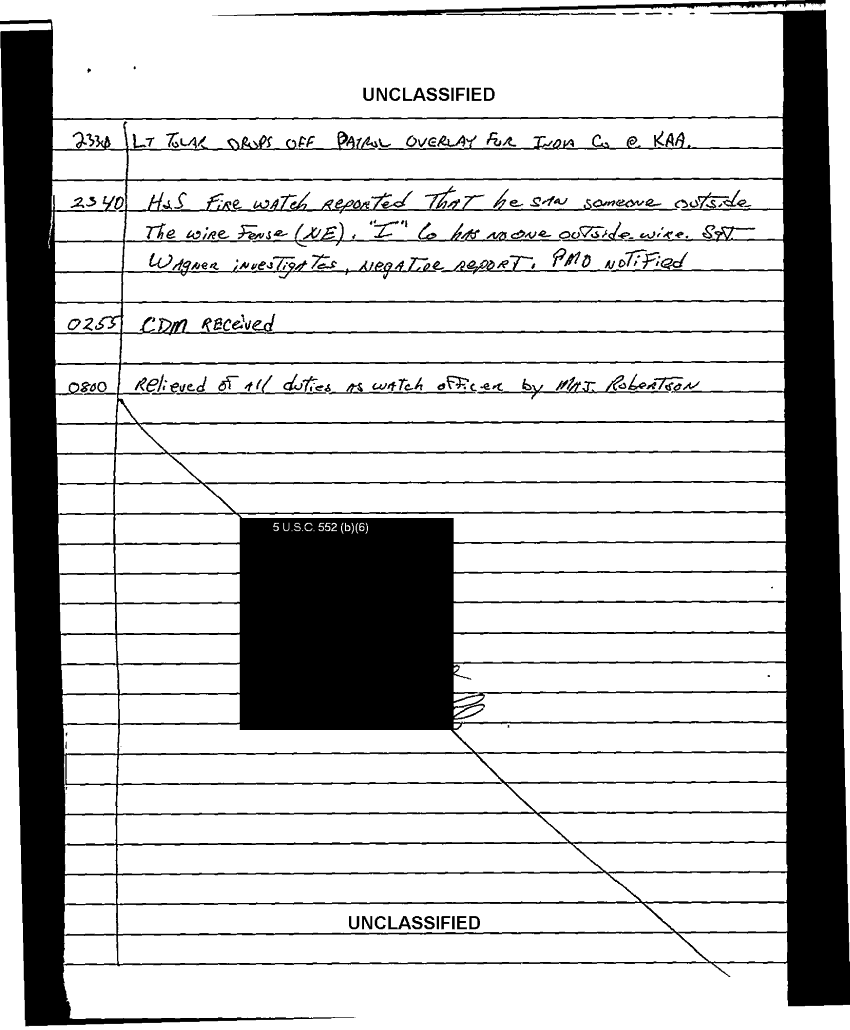 Document 103 f:/Week-35/BX600013/COMMAND CHRONOLOGY 3RD BATTALION 24TH MARINES JAN - MAR 1991 4 OF 4/handwritten log:0102970950272