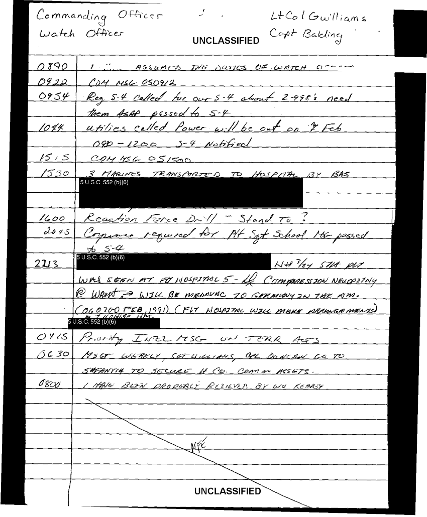 Document 103 f:/Week-35/BX600013/COMMAND CHRONOLOGY 3RD BATTALION 24TH MARINES JAN - MAR 1991 4 OF 4/handwritten log:0102970950272