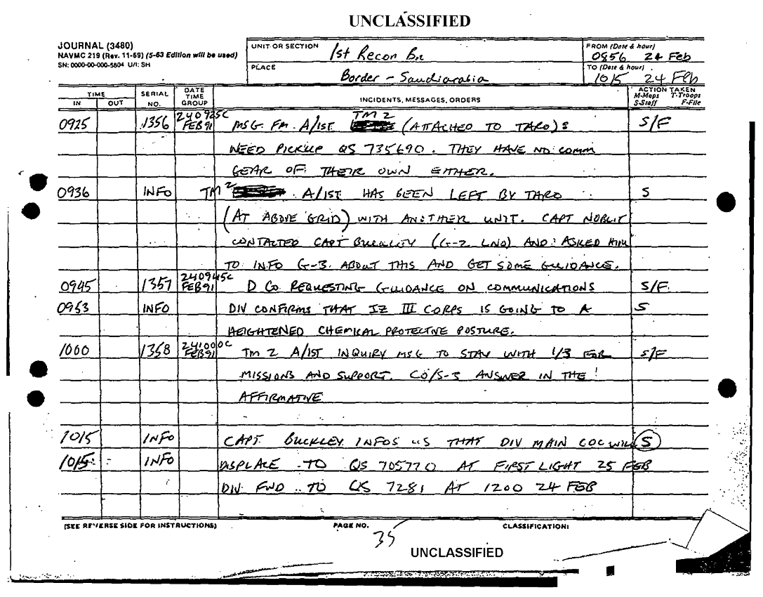Document 8 f:/Week-38/BX600020/COMMAND CHRONOLOGY 1ST RECONNAISSANCE BATTALION JAN - MAR 1991/1st recon bn journal 24 feb 91:01029709503812