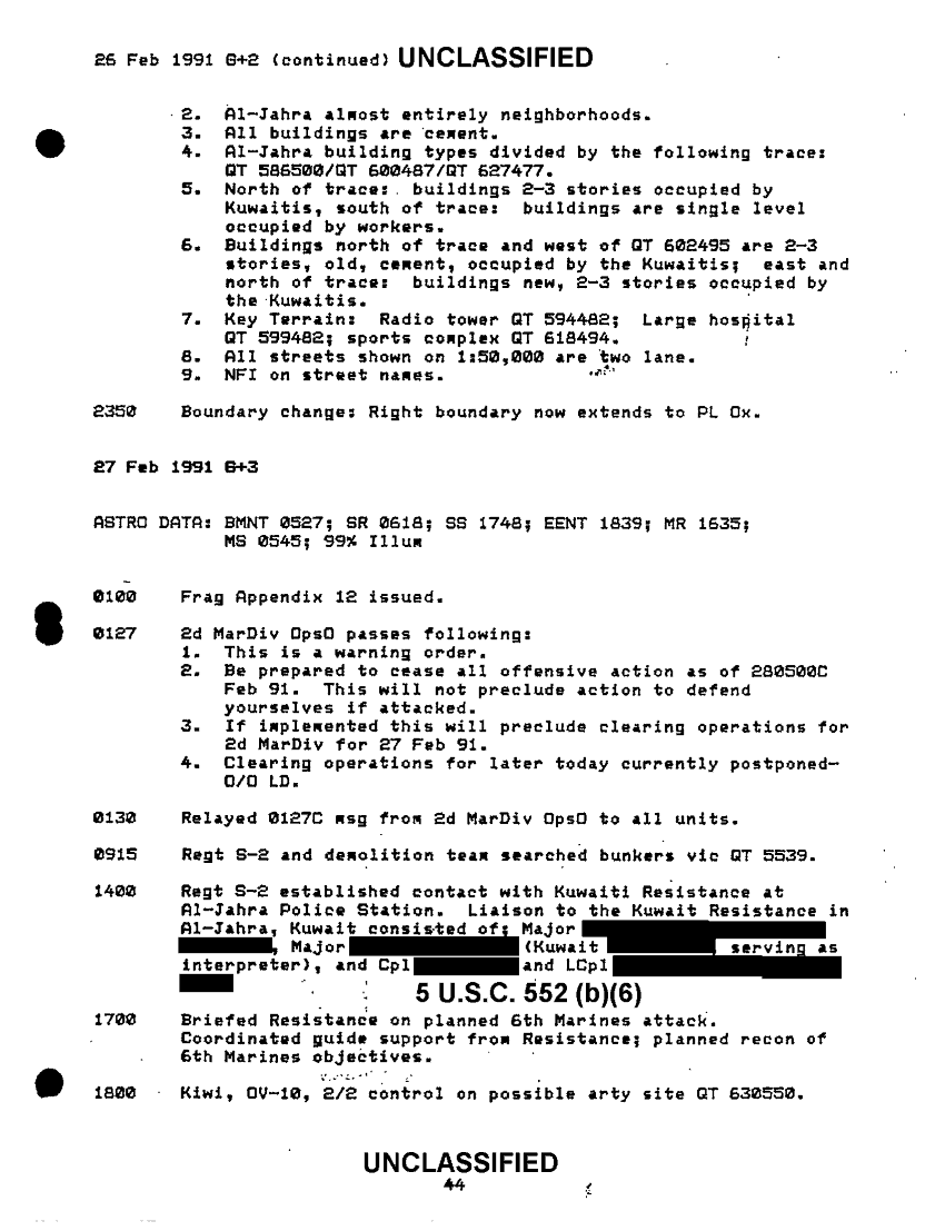 Document 47 f:/Week-51/BX600094/BATTLE ASSESSMENT DOCUMENTATION TABS B-M/6th marine regiment sequential listing of significant events:03249710491612