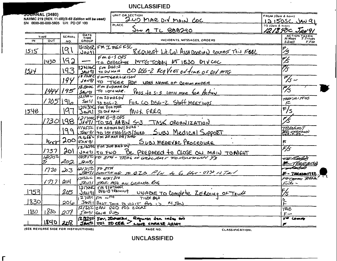 Subject = JOURNAL 2D MARDIV SUPPORTING DOCS SEP 90
