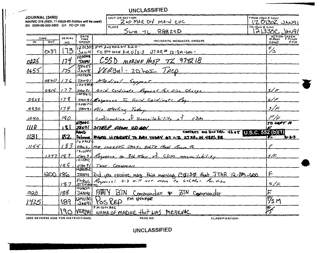Subject = JOURNAL 2D MARDIV SUPPORTING DOCS SEP 90