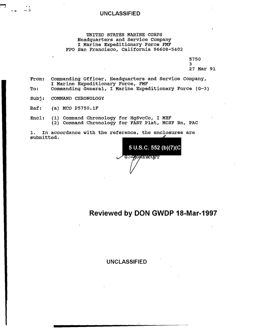 Document 8 f:/Week-51/BX600079/I MEF COMMAND CHRONOLOGY 27 MAR 91/command chronlogy 27 mar 91:03249710492734