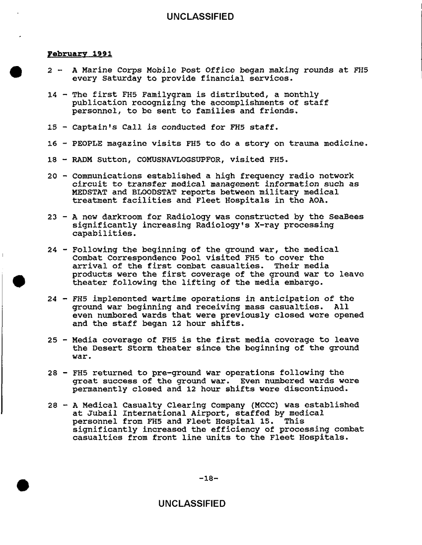 Subject = FLET HOSPITAL FIVE CHRONOLOGY 12 MAR 91