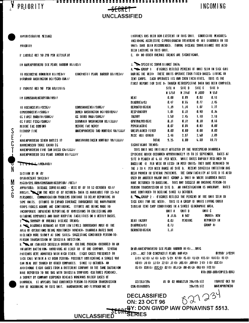 Document 3 f:/Week-41/BX300104/COMUSNAVLOGSUPFOR NAVY MEDICAL MESSAGE FILES 1990-1991 CNA 2910/disease surveillance wk of 7 to 13 oct 90:11049611393122