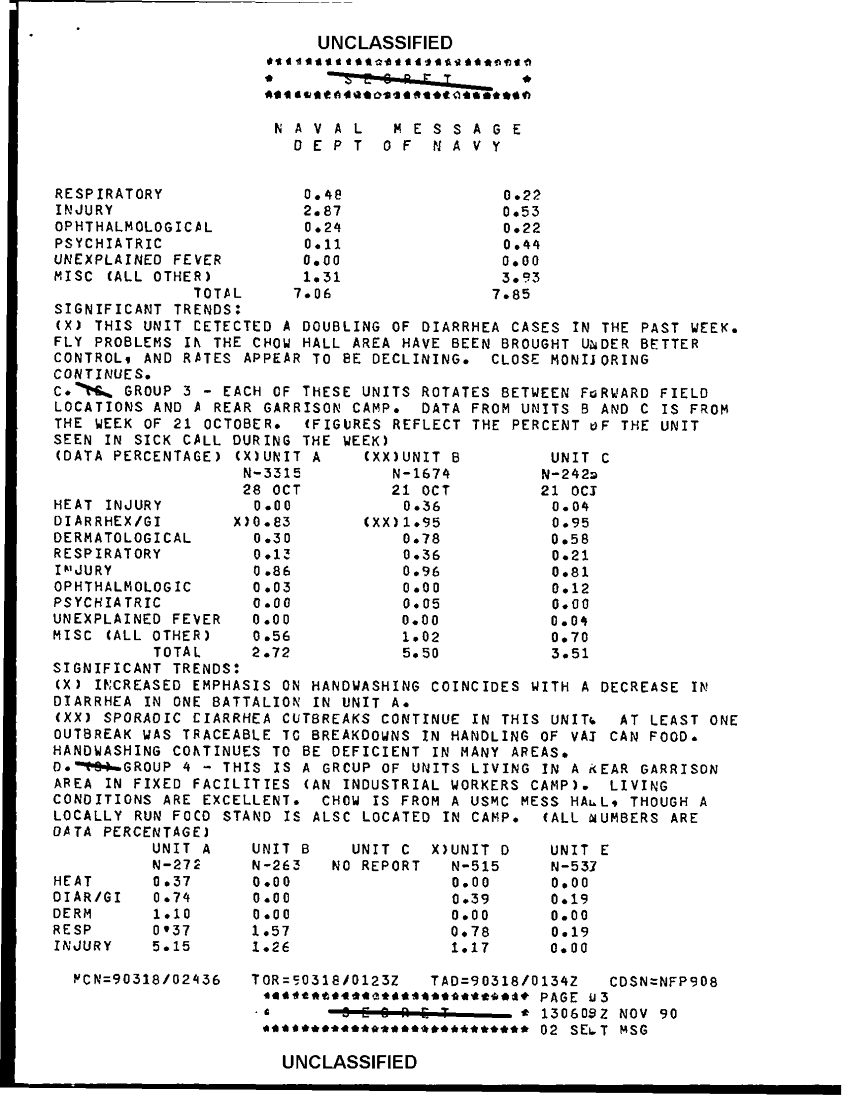 Document 5 f:/Week-41/BX300104/COMUSNAVLOGSUPFOR NAVY MEDICAL MESSAGE FILES 1990-1991 CNA 2910/disease surveillance for usmc forces wk of 28 :11049611394226