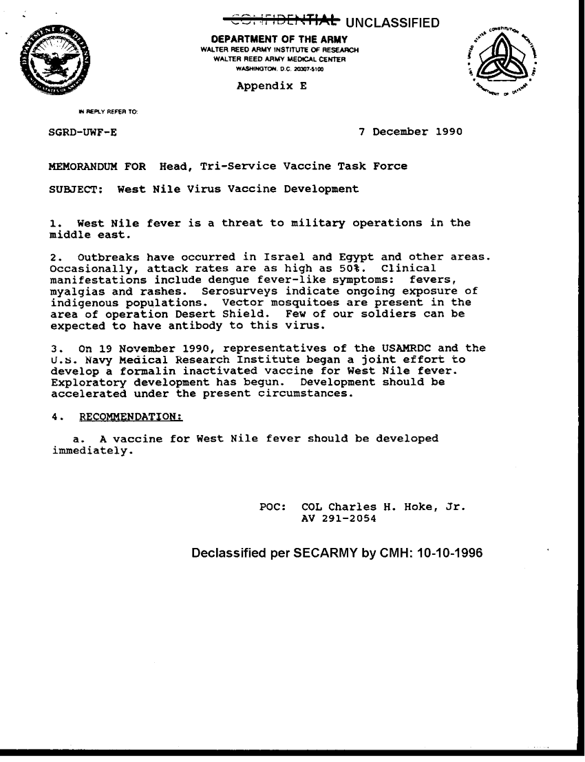Document 1 f:/Week-36/BX003202/DESERT SHIELD MEDICAL ISSUES REVIEW AND AD HOC WORKING GROUP/west nile virus vaccine development 7 dec 90:10119615391310