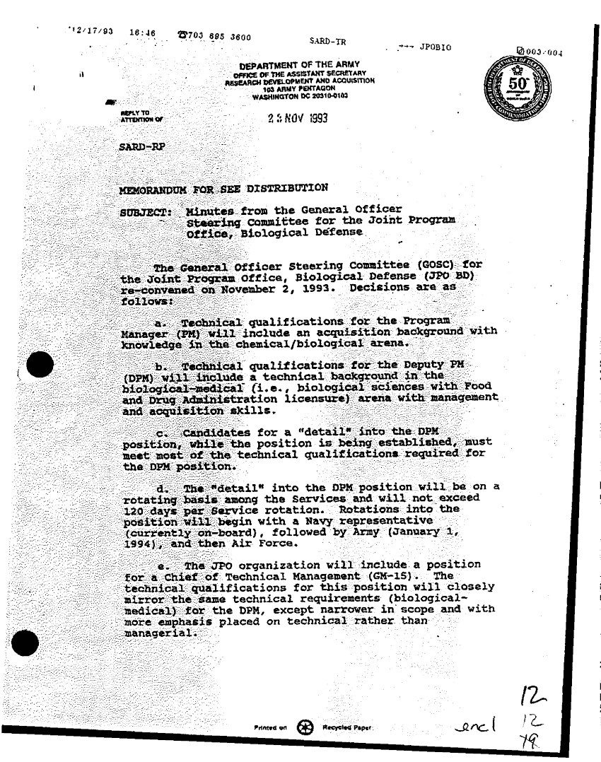 Document 2 f:/Week-36/BX003203/MINUTES FROM THE GENERAL OFFICER STEERING COMMITTEE/minutes for the joint program office biological :11089615084912