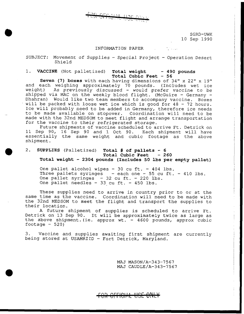 Folder Title = MOVEMENT OF SUPPLIES-SERIAL PROJECT-OPERATION DESERT SHIELD