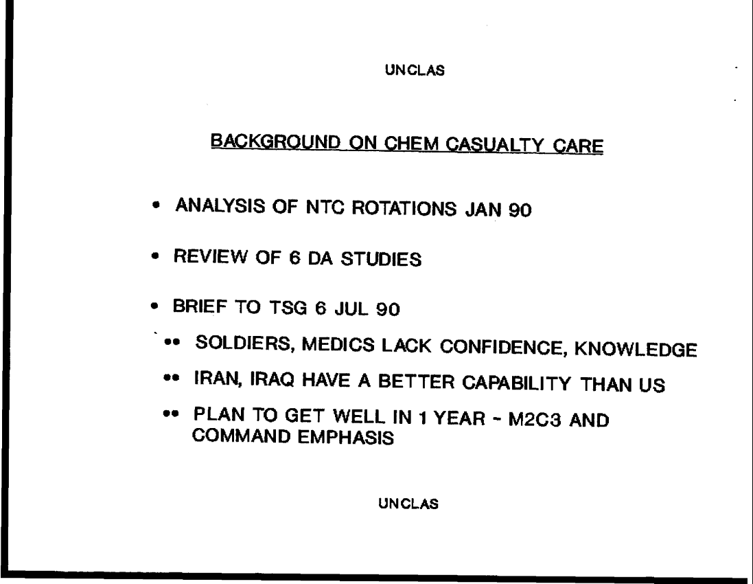 Subject = STATUS OF USAMRDC CHEMICAL CASUALTY CARE