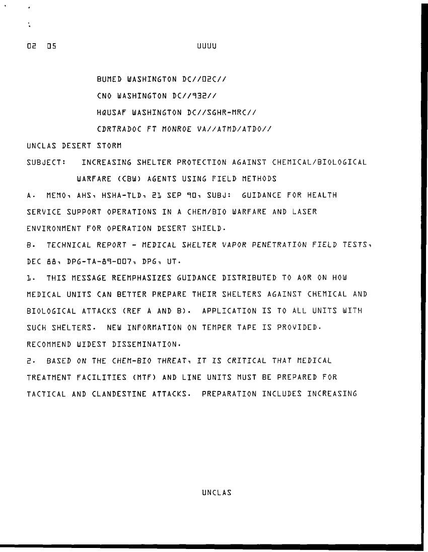 Subject = SHELTER PROTECTION AGAINIST CHEM BIOLOGICAL WARE