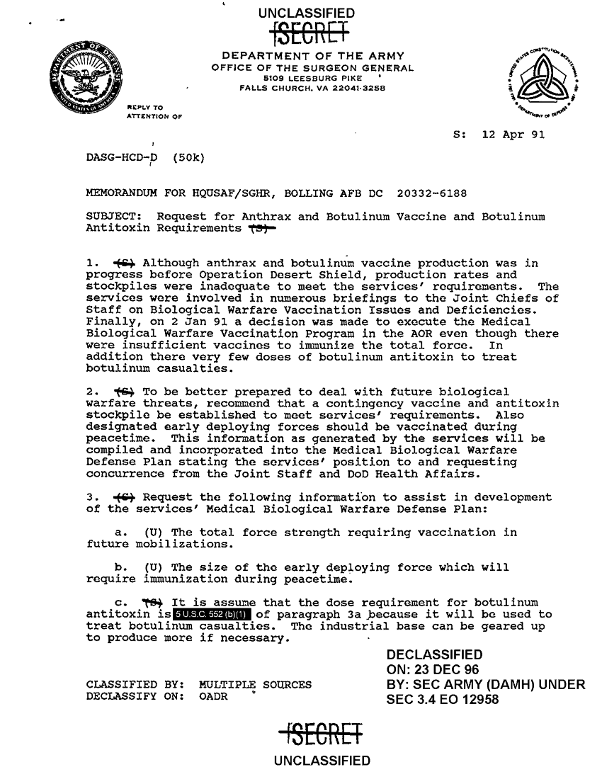 Folder Title = REQUEST FOR ANTHRAX AND BOTULINUM VACCINE AND BOTULIN