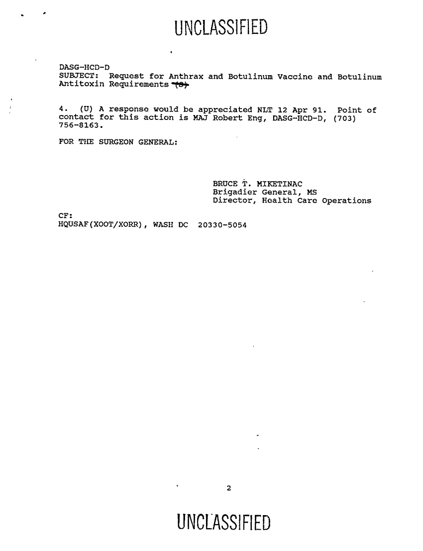Folder Title = REQUEST FOR ANTHRAX AND BOTULINUM VACCINE AND BOTULIN