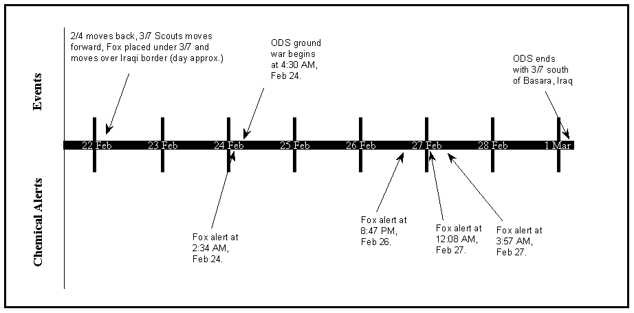 Figure 10. Timeline of ground war alerts (February 24 - March 1, 1991)