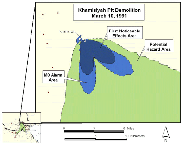 Figure 10. The 2000 Khamisiyah modeling First Noticable Effects and M8 alarm detection areas for March 10, 1991