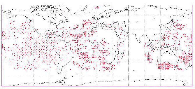 Figure A-13. Locations of global network of geosynchronous satellites' cloud tracking retrievals