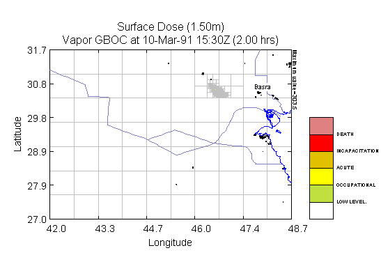 Figure A-20. HPAC/SCIPUFF concentration grids 2 hours after release