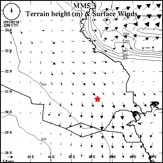 Figure A-61. 2000 MM5 Grid 3 predicted wind fields for 1200 UTC March 10, 1991