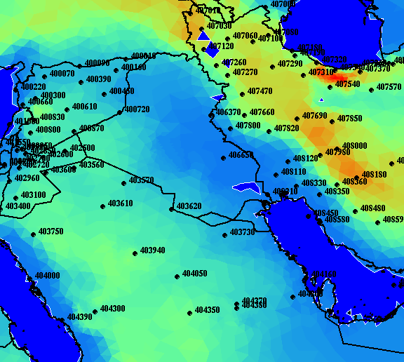 Figure A-74. Locations of the surface observations; labels are the WMO station numbers.