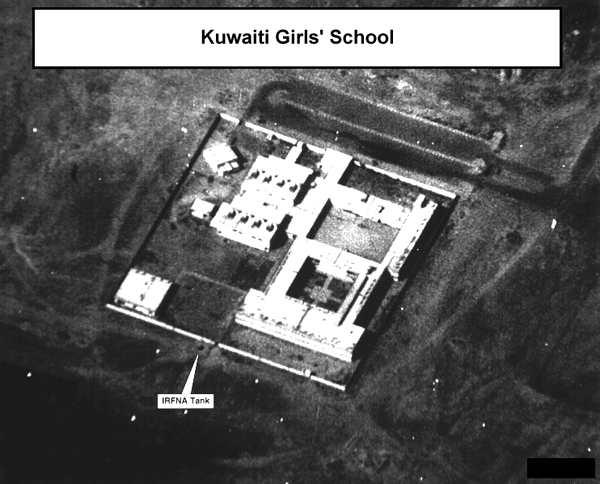 Figure 5. U2 reconnaissance photo of the Kuwaiti Girls' School from March 1, 1991. The obstructed view is due to oil well fire smoke over the area.