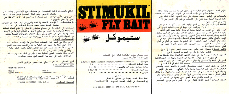 Figure 14. Stimukil® fly bait label from the Gulf War