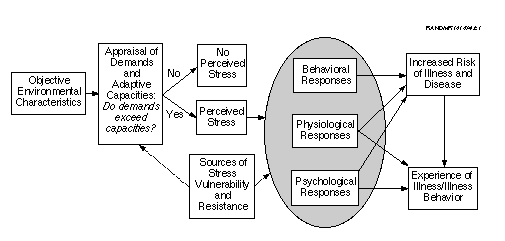 Thus, stress appraisals take into consideration an individual's repertoire of existing coping resources and individual vulnerabilities (Lazarus and Folkman, 1984; Kessler, Price, and Wortman, 1985; McEwen and Stellar, 1993; Steptoe, 1991), with these factors occupying a central role in most models of stress and health. Such models view stress as acting in concert with other factors to foster health problems, rarely regarding stress as a sufficient cause in itself. In fact, predisposing biological and psychosocial resources and vulnerability factors play a dual role in processes linking stress and health. First, individuals with more resources and fewer vulnerabilities may be less likely to perceive a given set of circumstances as stress-provoking. Second, when events are perceived as stressful, these individuals seem better able to adjust to the demands of the stress-provoking situation.[2] As shown in Figure 2.1, when sufficiently intense, perceived stress may activate physiological, behavioral, and psychological processes that place individuals at heightened risk for health problems or illness behavior (Cohen et al., 1995; Cohen and Rodriquez, 1995; Krantz et al., 1985; McEwen and Stellar, 1993; Steptoe, 1991).[3]