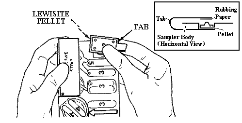 Figure 13. Rubbing the lewisite pellet and paper rubbing pad