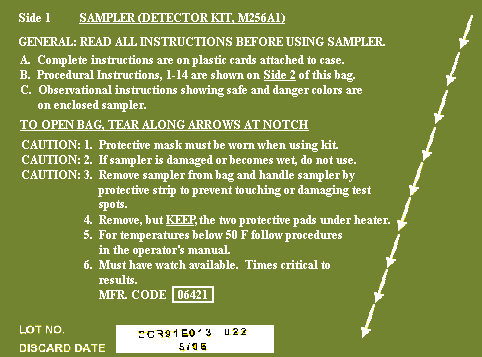 Figure 9. Vapor-Sampler's instructions on side 1 of the protective envelope
