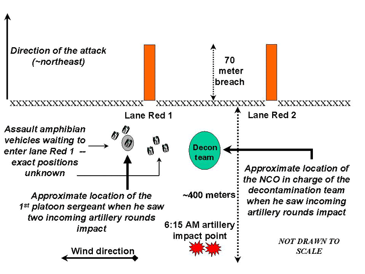 Figure 14. Approximate location of incoming artillery's impact area and the two witnesses