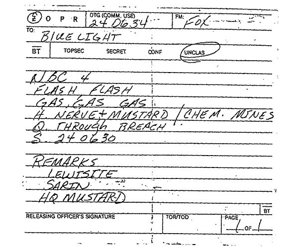 Figure 12. The NBC-4 report received by Blue Light, the 1/6 NBC officer, at 6:34 AM, February 24, 1991.