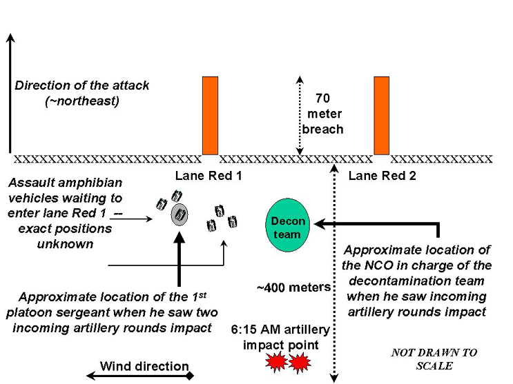 Figure 14. Approximate location of incoming artillery's impact area and the two witnesses.