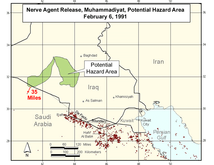 Figure 9. Closest approach of the nerve agent hazard are to US forces in Saudi Arabia